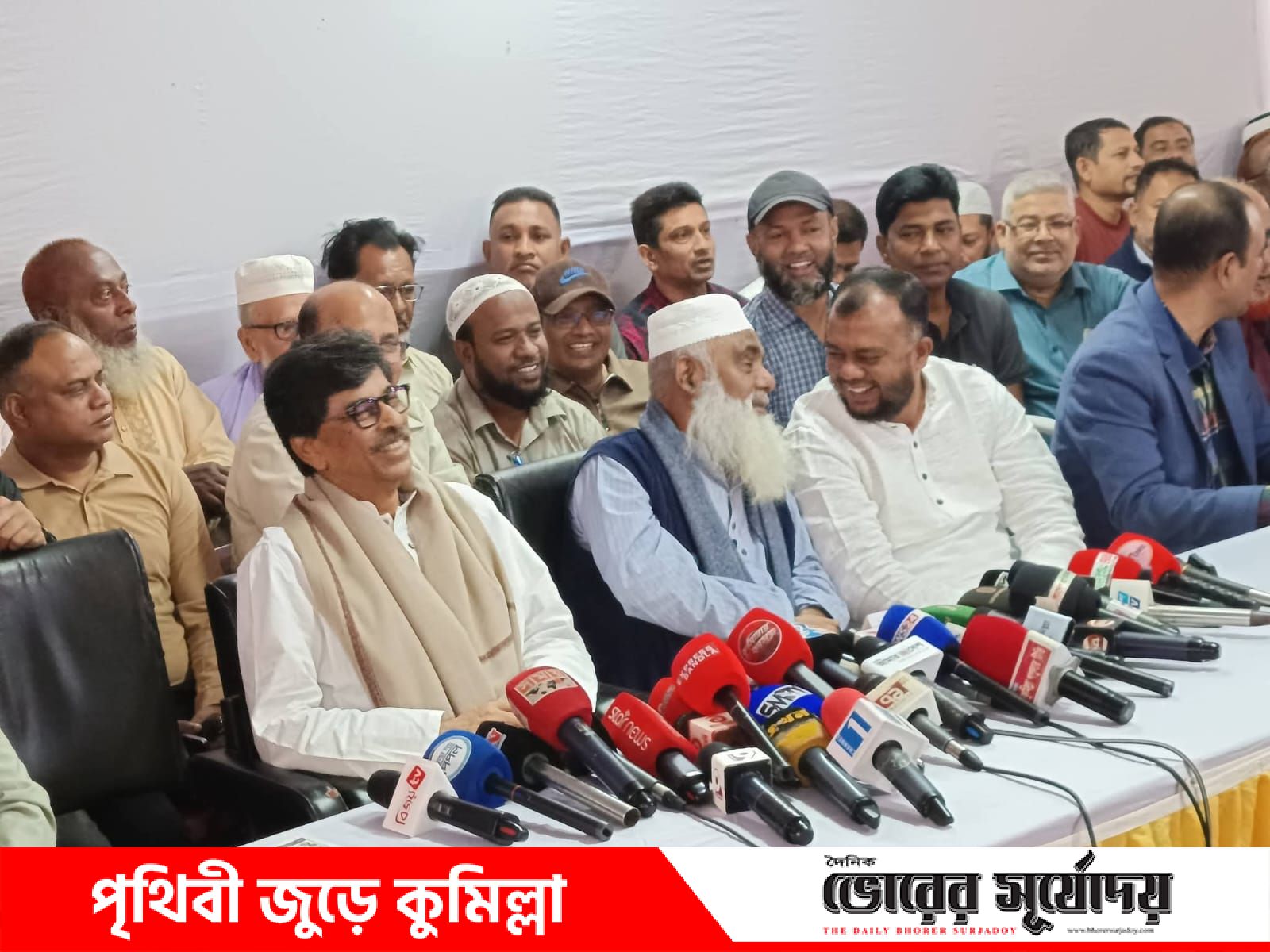 সংবাদ সম্মেলনে উপস্থিত ছিলেন কুমিল্লা-৬ আসনের বিএনপির মনোনীত প্রার্থী মো. মনিরুল হক চৌধুরী, কুমিল্লা দক্ষিণ জেলা বিএনপির সভাপতি ও কুমিল্লা-৮ (বরুড়া) আসনে বিএনপির প্রার্থী জাকারিয়া তাহের সুমন, কুমিল্লা-৫ (বুড়িচং ও ব্রাহ্মণপাড়া) আসনে বিএনপির প্রার্থী মো. জসিম উদ্দিন, কুমিল্লা বিভাগীয় সহসাংগঠনিক সম্পাদক মো. মোস্তাক মিয়া, বিএনপির জাতীয় নির্বাহী কমিটির সদস্য সৈয়দ জাহাঙ্গীর আলম, কুমিল্লা দক্ষিণ জেলা বিএনপির সিনিয়র সহসভাপতি আমিরুজ্জামান, কুমিল্লা দক্ষিণ জেলা বিএনপির সাধারণ সম্পাদক আশিকুর রহমান মাহমুদ ওয়াসিম , সাংগঠনিক সম্পাদক নজরুল হক ভূঁইয়া স্বপন,মহানগর বিএনপির সভাপতি উদবাতুল বারী আবু ও সাংগঠনিক সম্পাদক রাজিউর রহমান রাজিব, আদর্শ সদর উপজেলা বিএনপির সভাপতি মো. রেজাউল কাইয়ুম ও সাধারণ সম্পাদক শফিউল আলম রায়হান ।