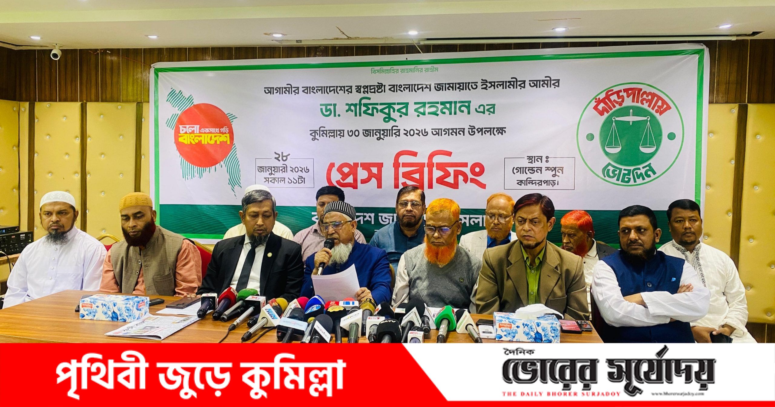 বাংলাদেশ জামায়াতে ইসলামীর আমির ডা. শফিকুর রহমান আগামী ৩০ জানুয়ারি (শুক্রবার) কুমিল্লা সফর করবেন। তার এই সফরকে কেন্দ্র করে কুমিল্লা মহানগর জামায়াতে ইসলামীর পক্ষ থেকে
